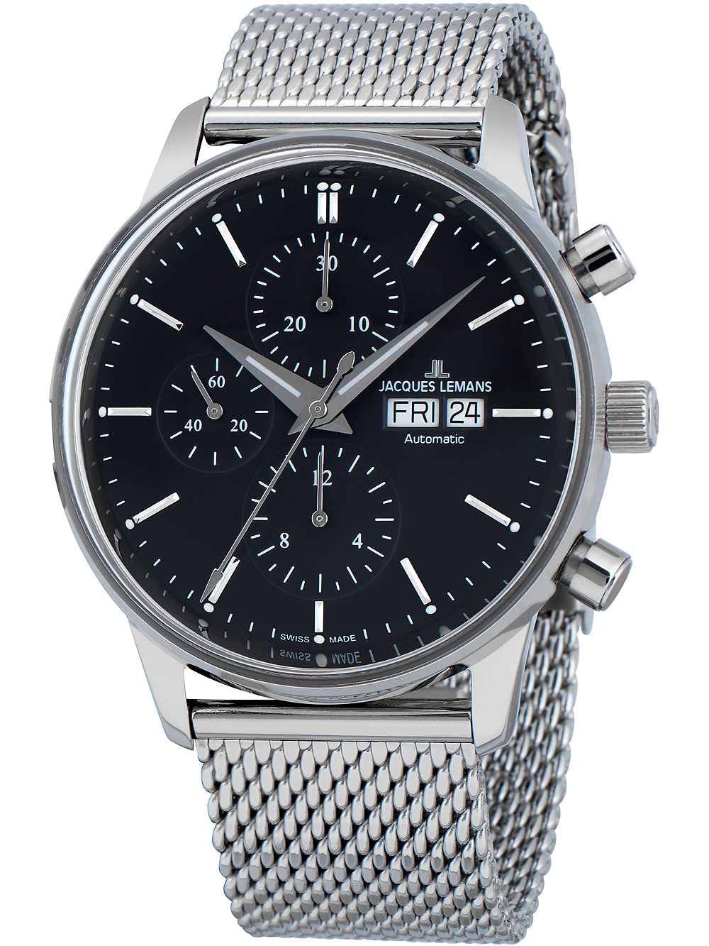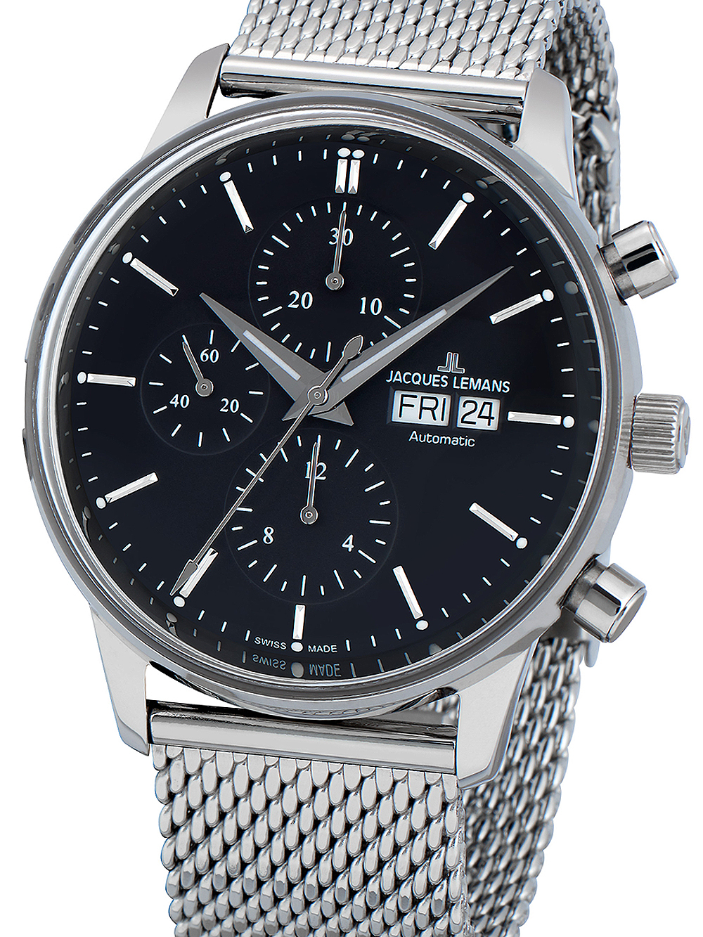 Další informace Všeobecné informace PohonAutomatický UrčeníPánské StylSportovní Modelové označeníN-208C Výrobní sérieRetro Classic Autom. Chrono 44mm Povrchová úpravaLeštěná, Matná Voděodolnost50 m/5 bar (Sprchování) Strojek7750, ETA, Swiss Made Netto hmotnost0,14 kg Pouzdro a ciferník SkloAkrylové CiferníkAnalogový Barva ciferníkuČerná Materiál pouzdraNerezová ocel Barva pouzdraStříbrná Tloušťka pouzdra16 mm Šířka pouzdra44 mm LunetaPevná Spodní krytPřišroubován, Skleněný Řemínek Materiál řemínkuNerezová ocel Barva řemínkuStříbrná Šířka řemínku22 mm SponaKlipová spona Max. obvod zápěstí220 mm Extra informace Obsah baleníBalení, Instrukce, Krabička, Záruční dokumenty OsvětleníIndexy, Ručičky FunkceChronograf, Datum, Den, Hodiny, Minuty, Sekundy Recenze Zatím zde nejsou žádné recenze. Buďte první, kdo ohodnotí “Jacques Lemans N-208C”Cancel ReplyVaše e-mailová adresa nebude zveřejněna. Vyžadované informace jsou označeny *Vaše hodnocení Hodnotit… Skvělý Dobrý Průměrný Ne tak špatný Velmi slabý Vaše recenze *Jméno * E-mail * Uložit do prohlížeče jméno, e-mail a webovou stránku pro budoucí komentáře. Odeslat