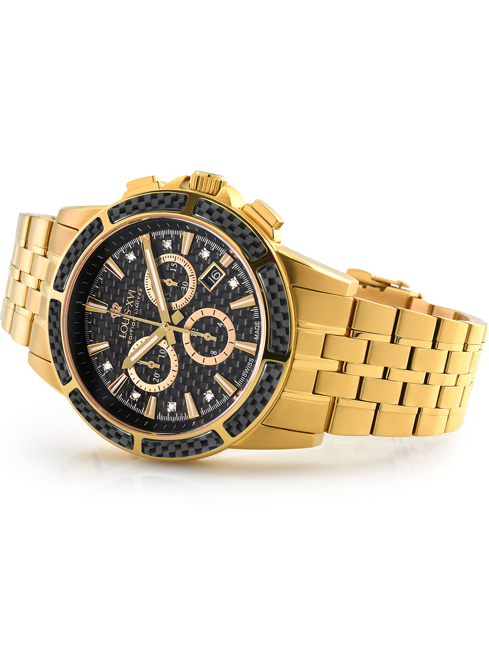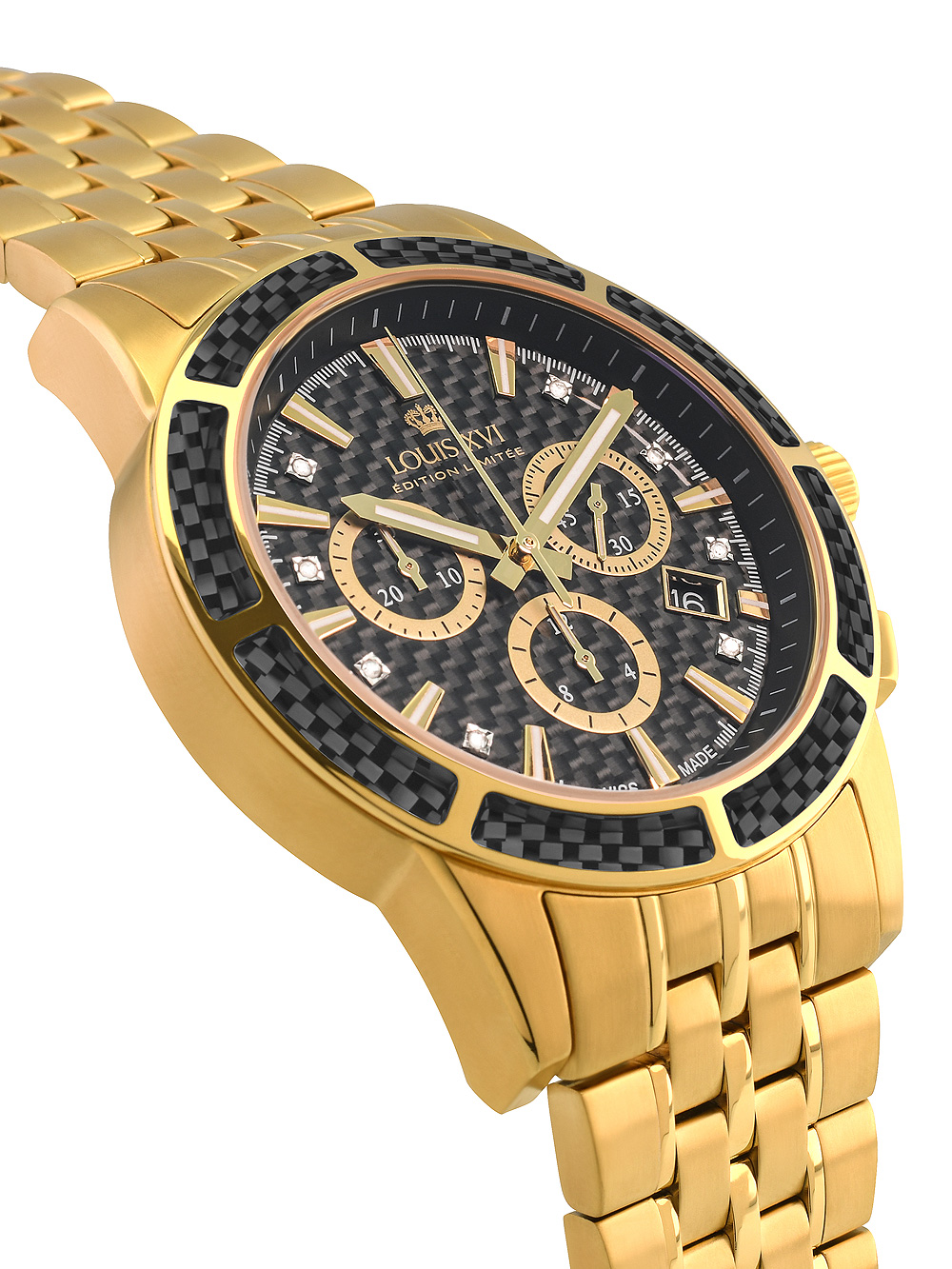 Další informace Všeobecné informace PohonBaterie (quartz) UrčeníPánské StylKlasické, Moderní Modelové označeníLXVI1103 Výrobní sérieMajesté Chronograph 43mm Povrchová úpravaLeštěná, Matná Voděodolnost50 m/5 bar (Sprchování) Strojek5030.D, Ronda, Swiss Made Netto hmotnost0,18 kg Pouzdro a ciferník SkloAntireflexní, Safírové CiferníkAnalogový Barva ciferníkuČerná Materiál pouzdraNerezová ocel Barva pouzdraČerná, Zlatá Tloušťka pouzdra12 mm Šířka pouzdra43 mm LunetaPevná Spodní krytNerezová ocel, Přišroubován Řemínek Materiál řemínkuNerezová ocel Barva řemínkuZlatá Šířka řemínku22 mm SponaSkládací spona Max. obvod zápěstí210 mm Extra informace Limitovaná ediceAno, X / 1000 Obsah baleníBalení, Instrukce, Krabička, Záruční dokumenty OsvětleníRučičky FunkceChronograf, Datum, Hodiny, Minuty, Sekundy Recenze Zatím zde nejsou žádné recenze. Buďte první, kdo ohodnotí “Louis XVI LXVI1103”Cancel ReplyVaše e-mailová adresa nebude zveřejněna. Vyžadované informace jsou označeny *Vaše hodnocení Hodnotit… Skvělý Dobrý Průměrný Ne tak špatný Velmi slabý Vaše recenze *Jméno * E-mail * Uložit do prohlížeče jméno, e-mail a webovou stránku pro budoucí komentáře. Odeslat