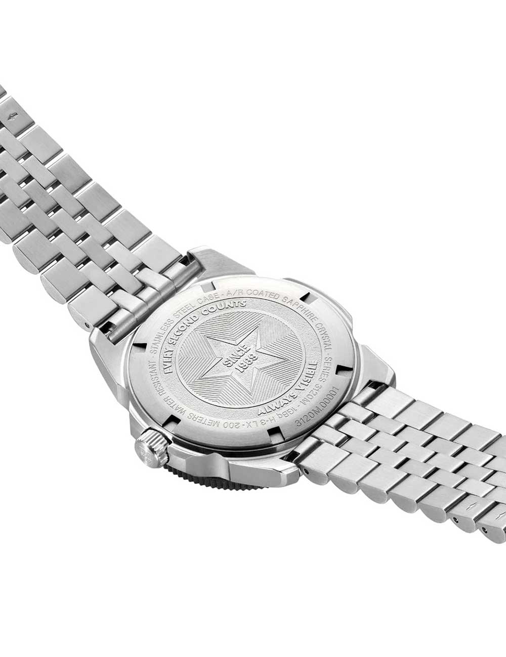 Další informace Všeobecné informace PohonBaterie (quartz) UrčeníDámské, Pánské, Unisex StylSportovní Modelové označeníXS.3122M.1 Výrobní sériePacific Diver Unisex 39mm 20ATM Povrchová úpravaMatná Voděodolnost200 m/20 bar (Profesionální potápění s dýchacími přístroji) Strojek515, Ronda, Swiss Made Netto hmotnost0,15 kg Pouzdro a ciferník SkloAntireflexní, Safírové CiferníkAnalogový Barva ciferníkuČerná Materiál pouzdraNerezová ocel, Uhlíkové vlákno Barva pouzdraČerná, Stříbrná Tloušťka pouzdra12 mm Šířka pouzdra39 mm LunetaOtočná, Proti směru hodinových ručiček Spodní krytNerezová ocel, Přišroubován KorunkaŠroubovací Řemínek Materiál řemínkuNerezová ocel Barva řemínkuStříbrná Šířka řemínku22 mm SponaSkládací spona Max. obvod zápěstí210 mm Extra informace Obsah baleníBalení, Instrukce, Krabička, Záruční dokumenty OsvětleníIndexy, Ručičky FunkceDatum, Hodiny, Minuty, Sekundy Recenze Zatím zde nejsou žádné recenze. Buďte první, kdo ohodnotí “Luminox XS.3122M.1”Cancel ReplyVaše e-mailová adresa nebude zveřejněna. Vyžadované informace jsou označeny *Vaše hodnocení Hodnotit… Skvělý Dobrý Průměrný Ne tak špatný Velmi slabý Vaše recenze *Jméno * E-mail * Uložit do prohlížeče jméno, e-mail a webovou stránku pro budoucí komentáře. Odeslat